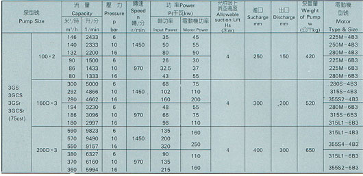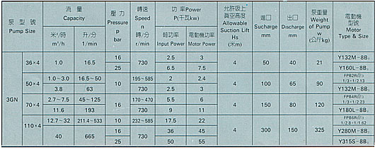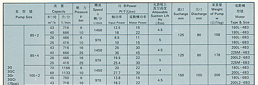 三螺桿泵所輸液體為各種不含固體顆粒,無(wú)腐蝕性油類(lèi)及類(lèi)似油的潤(rùn)滑性液體,3gr三螺桿泵、36X6A-W21所輸液體粘度為1.2-100E(3.0-760cst),高粘度液體亦可通過(guò)加溫降粘后輸送.