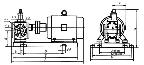 YCB圓弧齒輪泵型外形及安裝尺寸圖曲線
